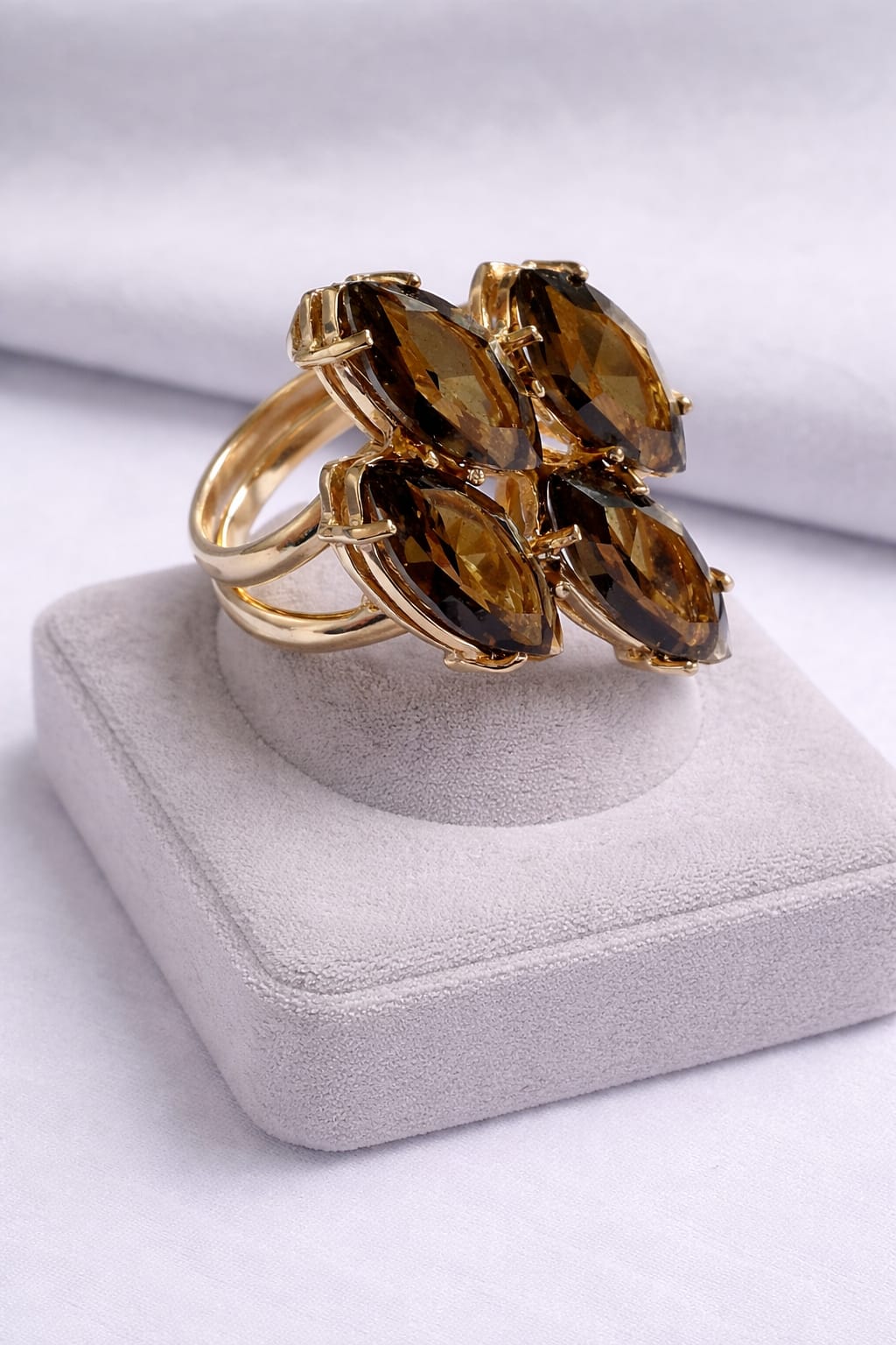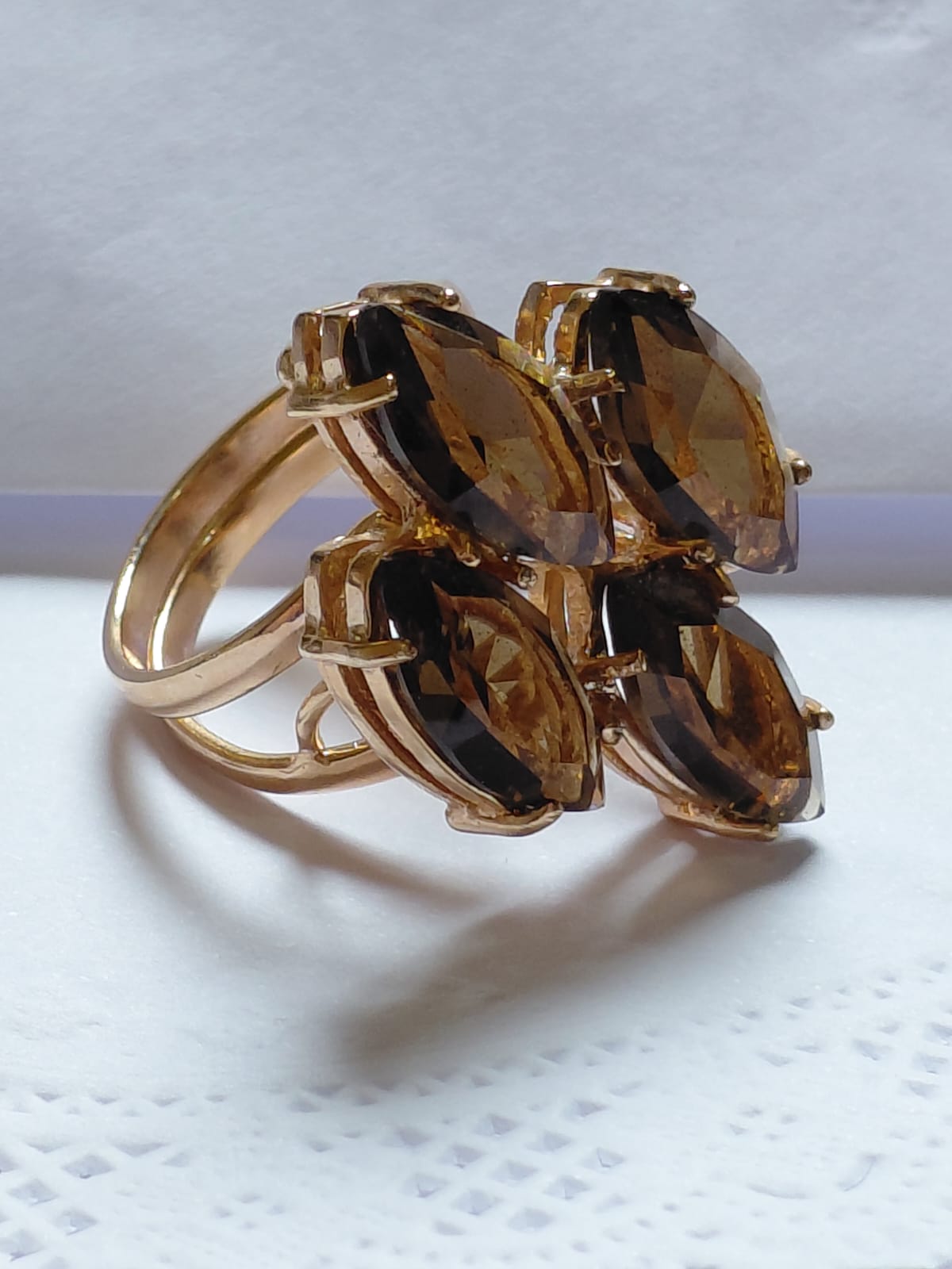 Seja para um look casual, com um leve toque de glamour, ou para uma composição mais elaborada e luxuosa, o anel folheado a ouro rosé com cristal fumê é incrivelmente versátil. Este acessório é ideal para alavancar sua coleção de joias ou presentear alguém especial. É leve e confortável para uso prolongado, assegurando uma experiência perfeita tanto em termos de estética quanto de praticidade.