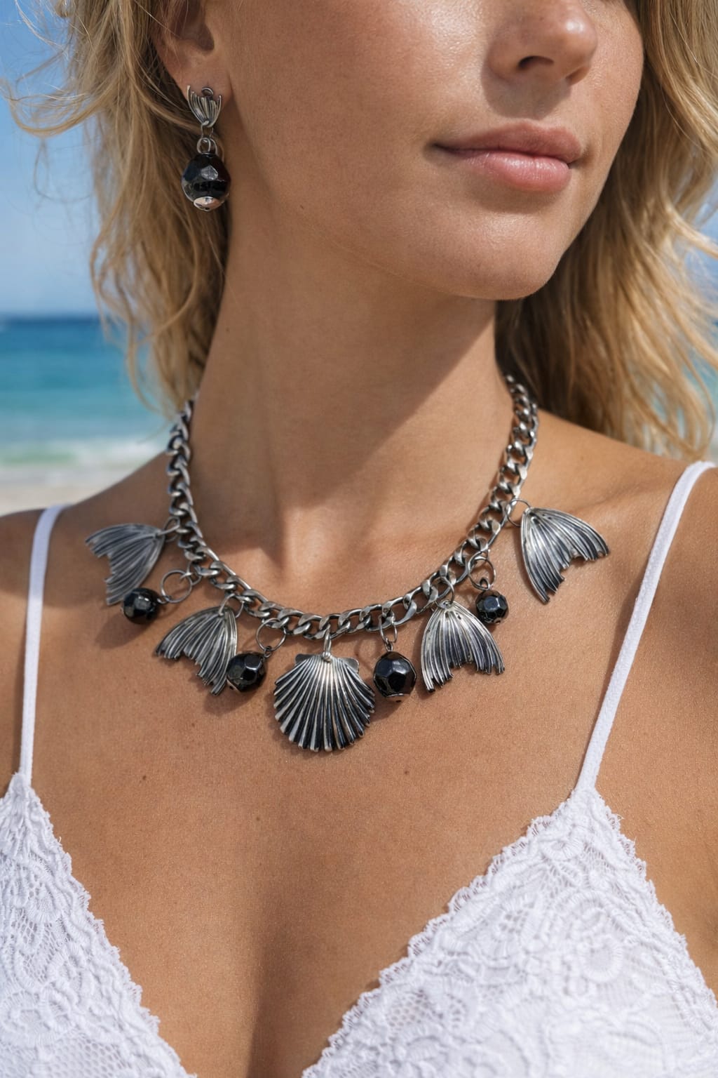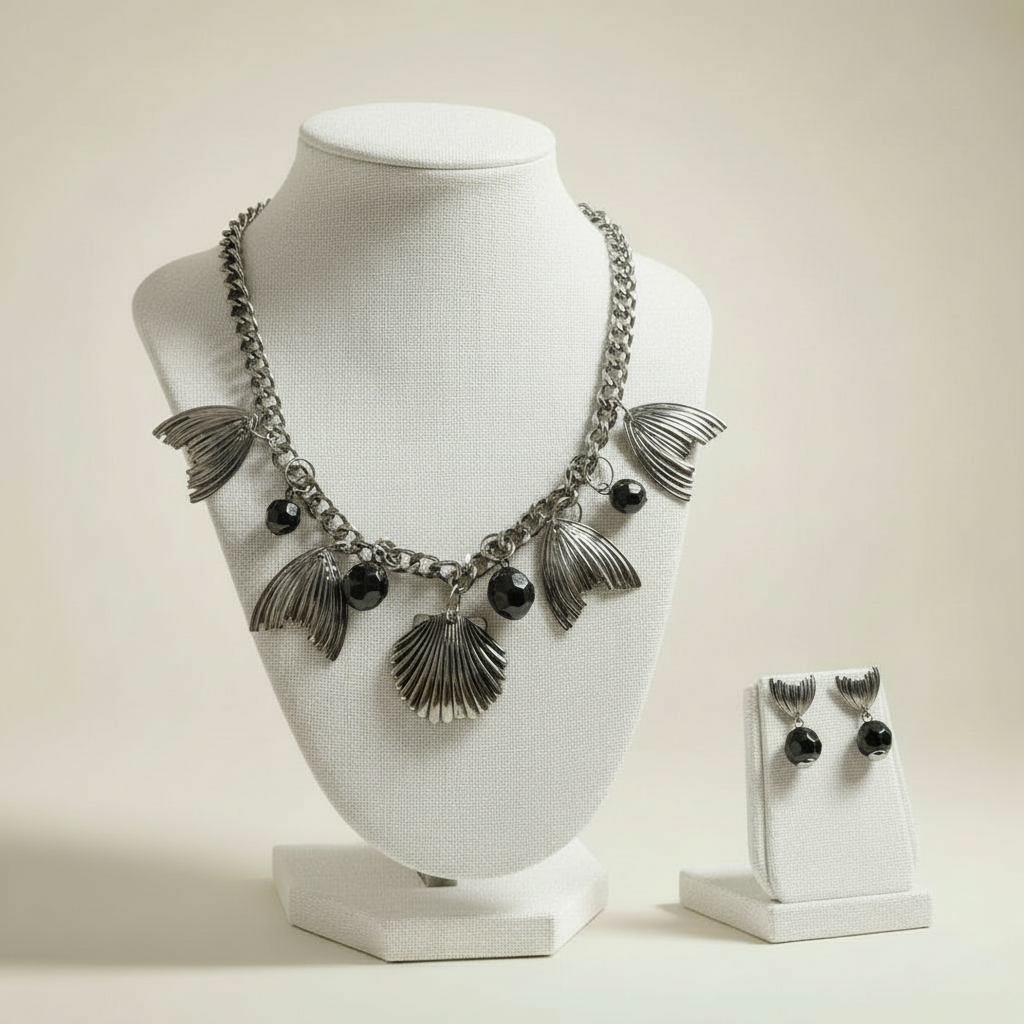Transforme o seu visual com este conjunto exclusivo de colar e brincos inspirado na beleza do oceano. Apresentando pingentes em formato de concha e cauda de sereia, esta peça adiciona um toque temático e sofisticado ao seu dia a dia, perfeito para os amantes de acessórios que celebram a natureza e estilo. Cada detalhe foi pensado para oferecer elegância e originalidade.