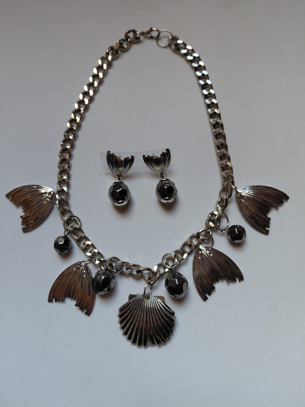 Fabricado em metal grafite, o colar traz esferas de 10mm e 12mm, enquanto os brincos se destacam com sua cauda de sereia e esferas de 12mm. A tonalidade grafite garante versatilidade, combinando perfeitamente com diversos looks, desde uma ocasião especial até eventos casuais. A harmonia entre os pingentes e os materiais escolhidos faz deste conjunto uma escolha única para quem valoriza acessórios modernos e diferenciados.