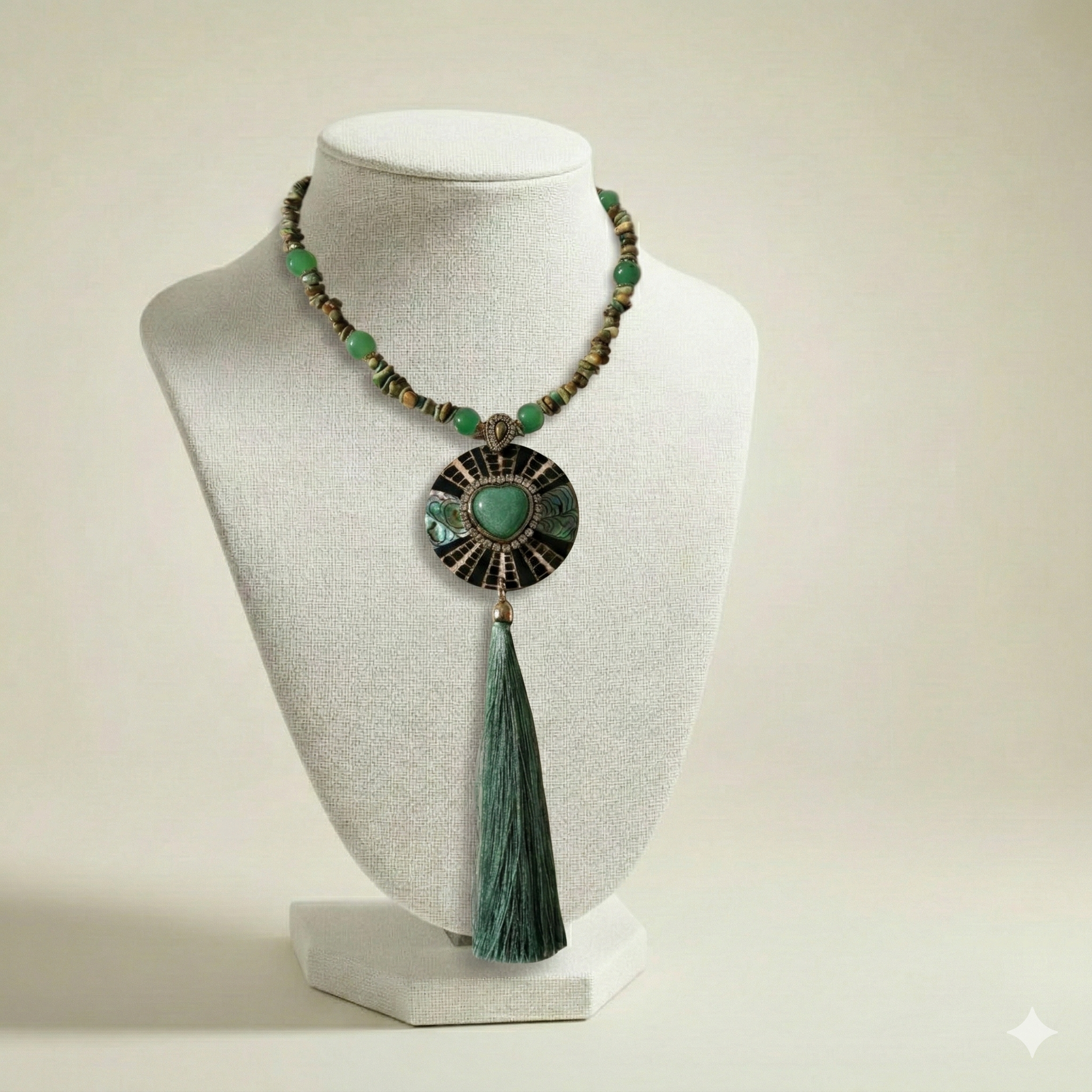 Descubra a elegância do Colar Longo Pedras Naturais Turquesa e Quartzo Verde Azul-turquesa da marca SM Sedenho. Este maxi colar é uma peça única que combina a beleza das pedras naturais, como abalone e quartzo, com um design sofisticado, ideal para mulheres que buscam destacar sua personalidade e estilo.
